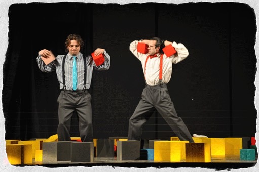 In scena due clown, Uno e l’altro, scoprono uno strano mondo fatto solo di cubi: cubi grandi e piccoli, cubi rossi e cubi blu. Per Uno, questi cubi sono solo cubi. Ma l’Altro sa come usarli per costruire un mondo intero, e, a poco a poco, trascina Uno nel gioco… Due visioni molto diverse del mondo si scontrano per creare un meraviglioso spettacolo comico con cavalli, moto, treni, castelli, battaglie, amore, risate e anche qualche lacrima… Il Pandemonium Teatro ti porta in una pazza avventura tra fantasia e creatività.