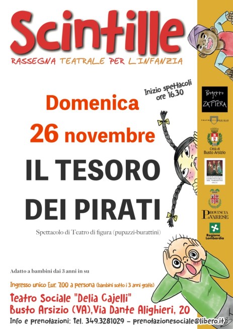 Domenica 26 novembre in scena “Il Tesoro dei Pirati” della compagnia “Teatro Pirata”.