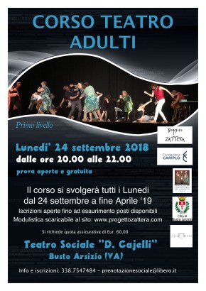 A settembre partirà il corso di teatro per adulti (primo livello) Il corso si svolgerà tutti i lunedì a partire dal 24 settembre dalle ore 20.00 alle 22.00 Posti limitati max 25 iscritti… Continua a leggere