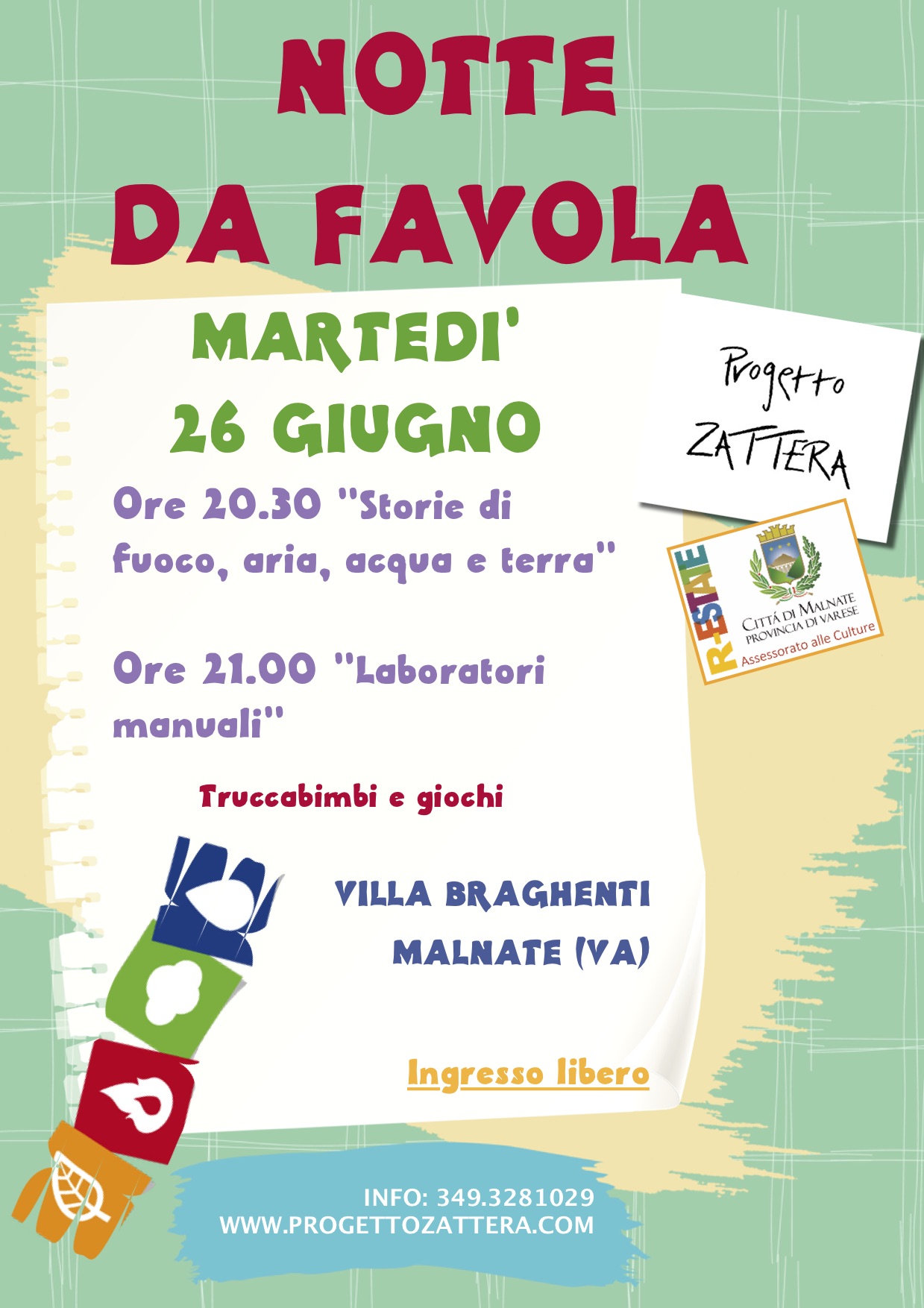 Martedì 26 giugno dalle ore 20.30 spettacoli, giochi, laboratori manuali presso il parco di Villa Braghenti a Malnate (VA)