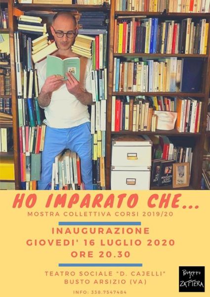 Giovedì 16 luglio alle ore 20.30 mostra dei lavori finali del corso di teatro per adulti di Progetto Zattera del Teatro Sociale di Busto Arsizio. Si ringraziano tutti i corsisti e Stefano Dell’Accio per l’ispirazione. Per prenotazioni 338.7547484
