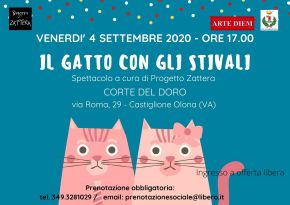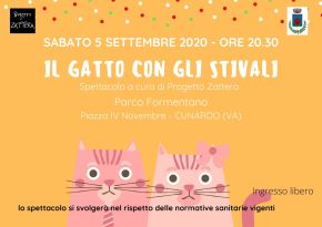 Sabato 5 settembre ore 20.30 Parco Formentano in Piazza IV Novembre – CUNARDO (VA) IL GATTO CON GLI STIVALI con Progetto Zattera (Varese) La fiaba classica di Perrault, raccontata a due voci, diventa… Continua a leggere