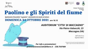 Domenica 24 ottobre alle ore 16.15 Paolino, protagonista ed esperto pescatore, trascorre la vita pacificamente, anno dopo anno. Eridania e Fluvio, sono gli spiriti del fiume, protettori delle sue acque e della natura.… Continua a leggere