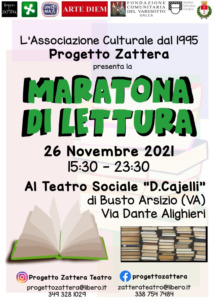 Venerdì 26 novembre dalle ore 17.15 all Teatro Sociale Delia Cajelli di Busto Arsizio, arriva la maratona di lettura, per grandi e piccini, dalle 19.15 aperte le porte per gli adulti e i ragazzi.