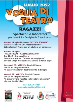 Martedì 12 e 19 luglio 2022 arriva a Gazzada Schianno (VA) il doppio appuntamento con il corso di teatro gratuito TEATRO INSIEME per la coppia adulto e bambina/o. Il corso, ad ingresso libero e… Continua a leggere