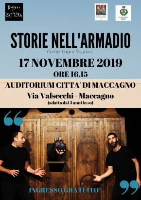 ATTENZIONE! COMUNICAZIONE IMPORTANTE! A causa di una improvvisa indisponibilità di uno degli attori, lo spettacolo “Leo Da Vinci”, in programma per domenica 24 novembre alle ore 16.30 al Teatro Sociale “D. Cajelli” di… Continua a leggere