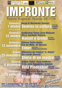 Festival Impronte è nato per potenziare l’organizzazione e la promozione dello spettacolo dal vivo nel territorio. Una progettualità condivisa in rete con diversi Enti della provincia di Varese, che promuoveranno diverse compagnie nazionali di teatro per i ragazzi attraverso produzioni che mettono in evidenza i temi del disagio, dell’ecologia, della storia locale e globale.